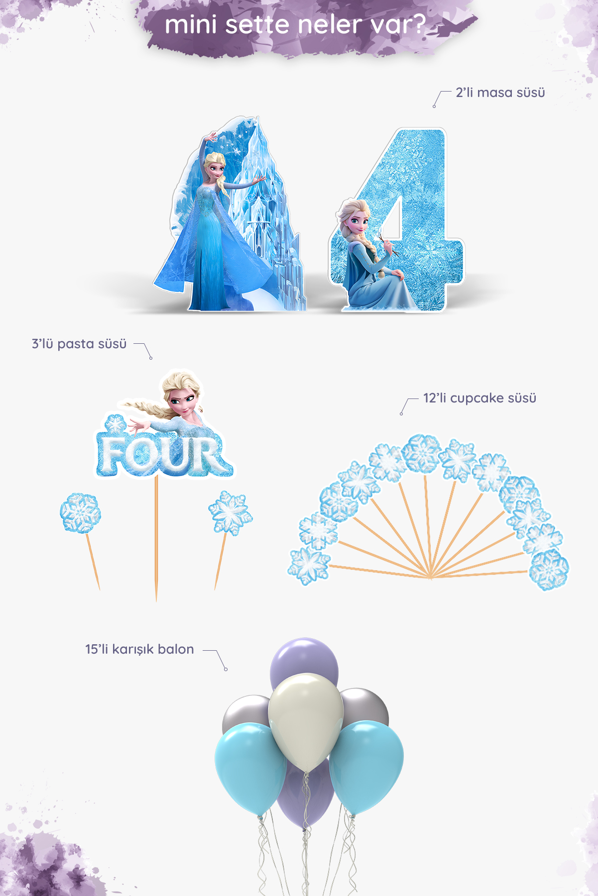 Frozen Elsa Temalı 4 Yaş Doğum Günü Parti Seti Doğum Günü Konsepti – Mini