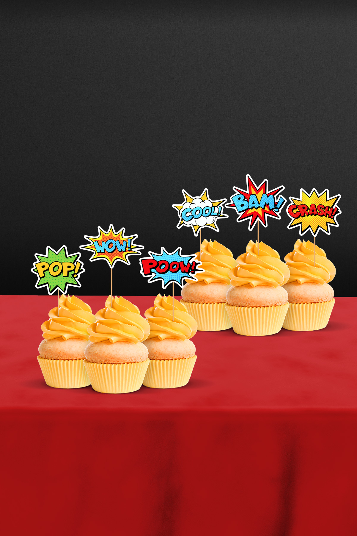 - 12’li Karışık Süper Kahraman Çizgi Roman Konuşma Balonlu Cupcake Süsü