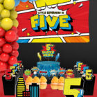Süper kahraman hayranı 3, 4 ve 5 yaşındaki çocuklar için tasarladığımız bu eşsiz doğum günü setiyle, kutlamalar tam bir çizgi roman macerasına dönüşüyor! Pop art çizgi roman atmosferi  yaratan canlı tasarımlar, sarı, kırmızı ve mavi renklerin enerjisiyle buluşuyor. Her detay, Spider-Man, Batman, Superman ve daha birçok kahramana uyum sağlayacak şekilde özenle hazırlandı. Hangi kahraman olmak istediğine karar veremeyen veya aynı anda hepsi olmak isteyen minik kahramanınız doğum gününde, hayallerindeki maceraya adım atacak!