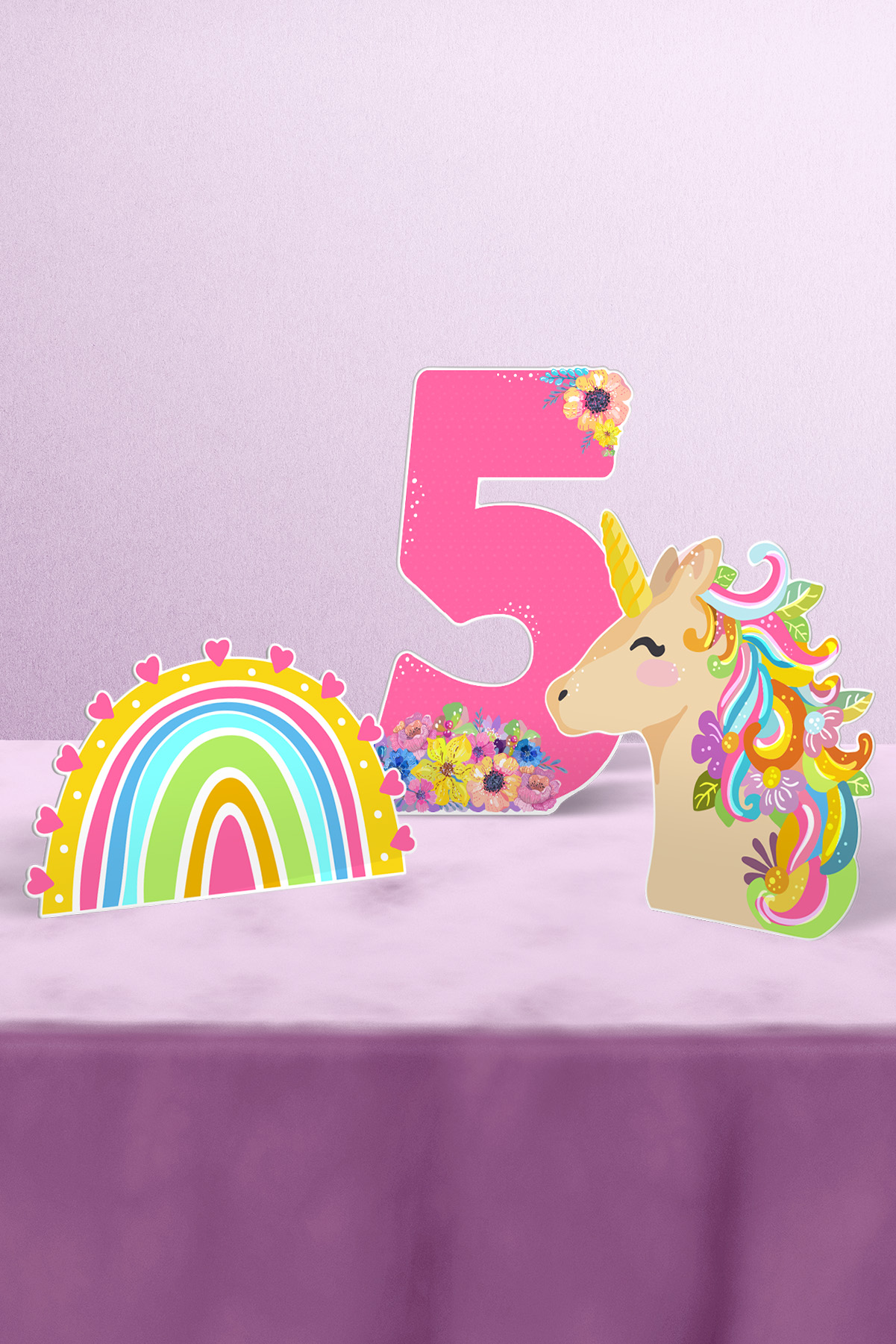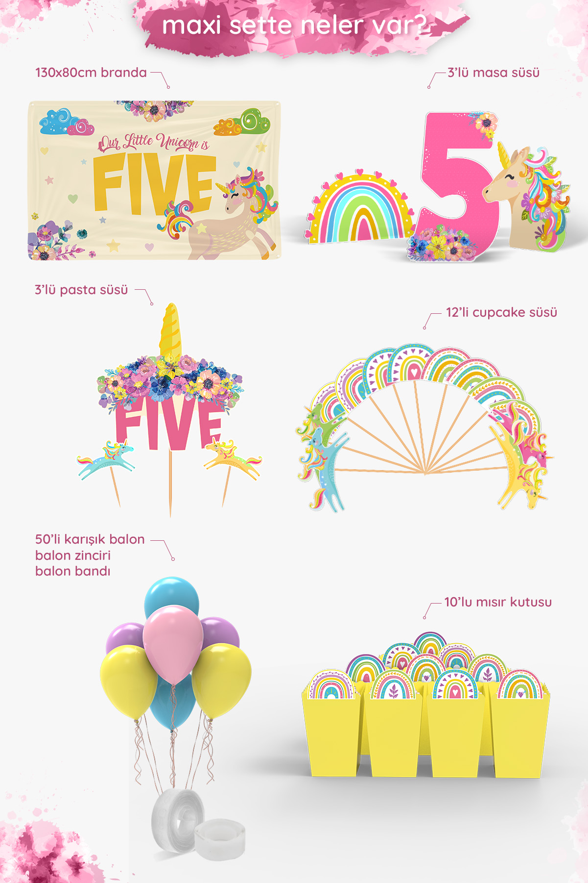 Unicorn Temalı 5 Yaş Doğum Günü Süsü Parti Seti – Maxi