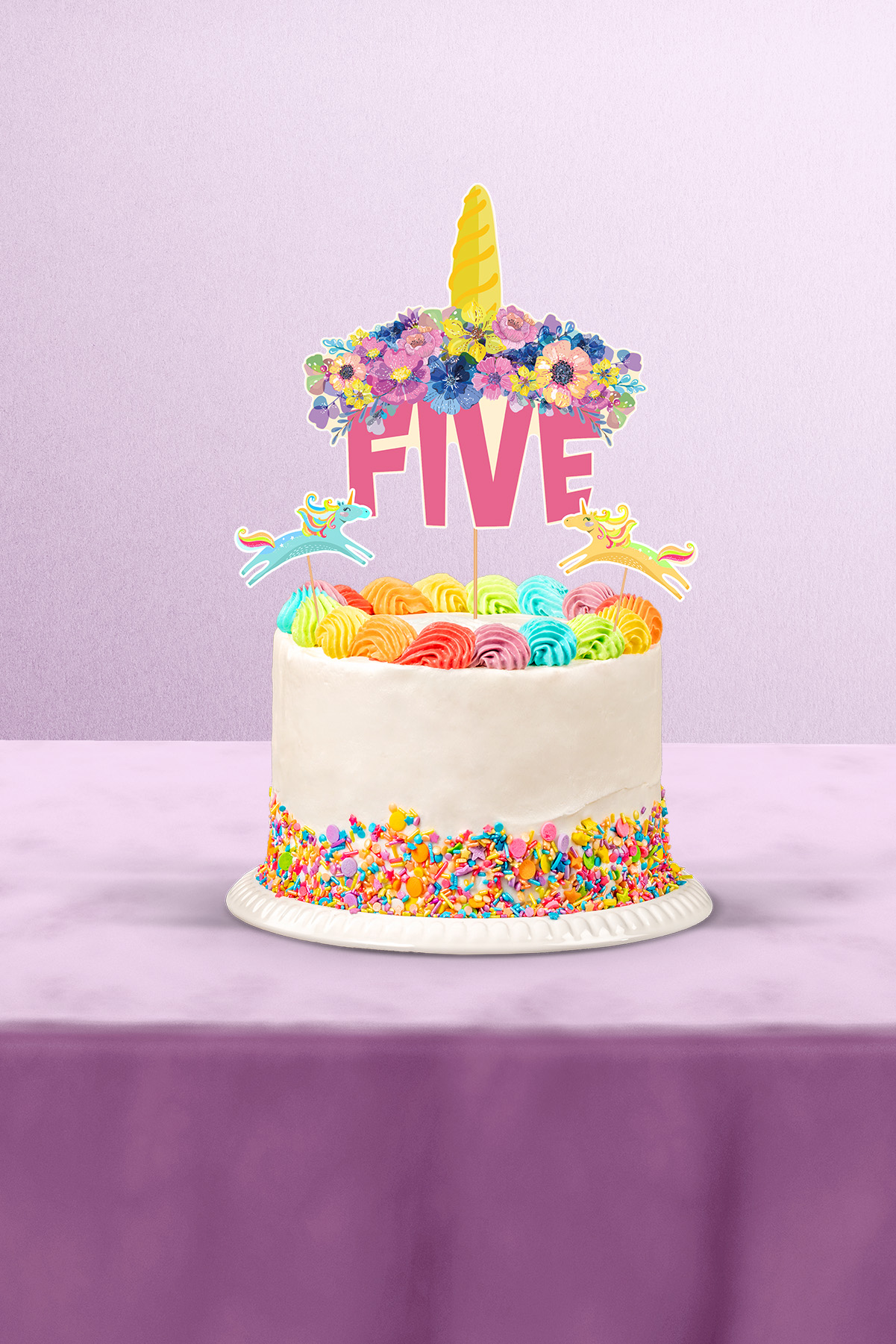- Unicorn Temalı Five 3’lü 5 Yaş Pasta Süsü Seti