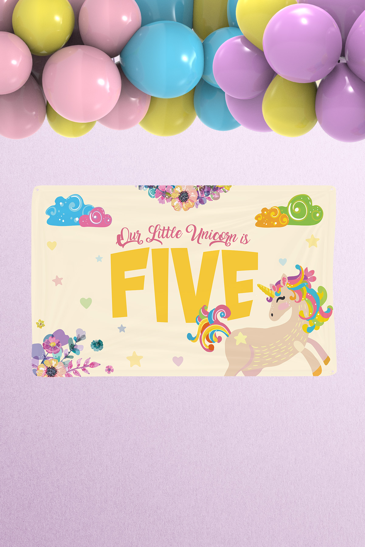 - Unicorn Temalı 5 Yaş Afiş (130x80cm Kuş Gözlü Vinil Branda)